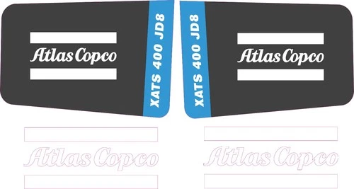 This decal kit is designed to fit Atlas Copco XATS 400 JD8 machinery.