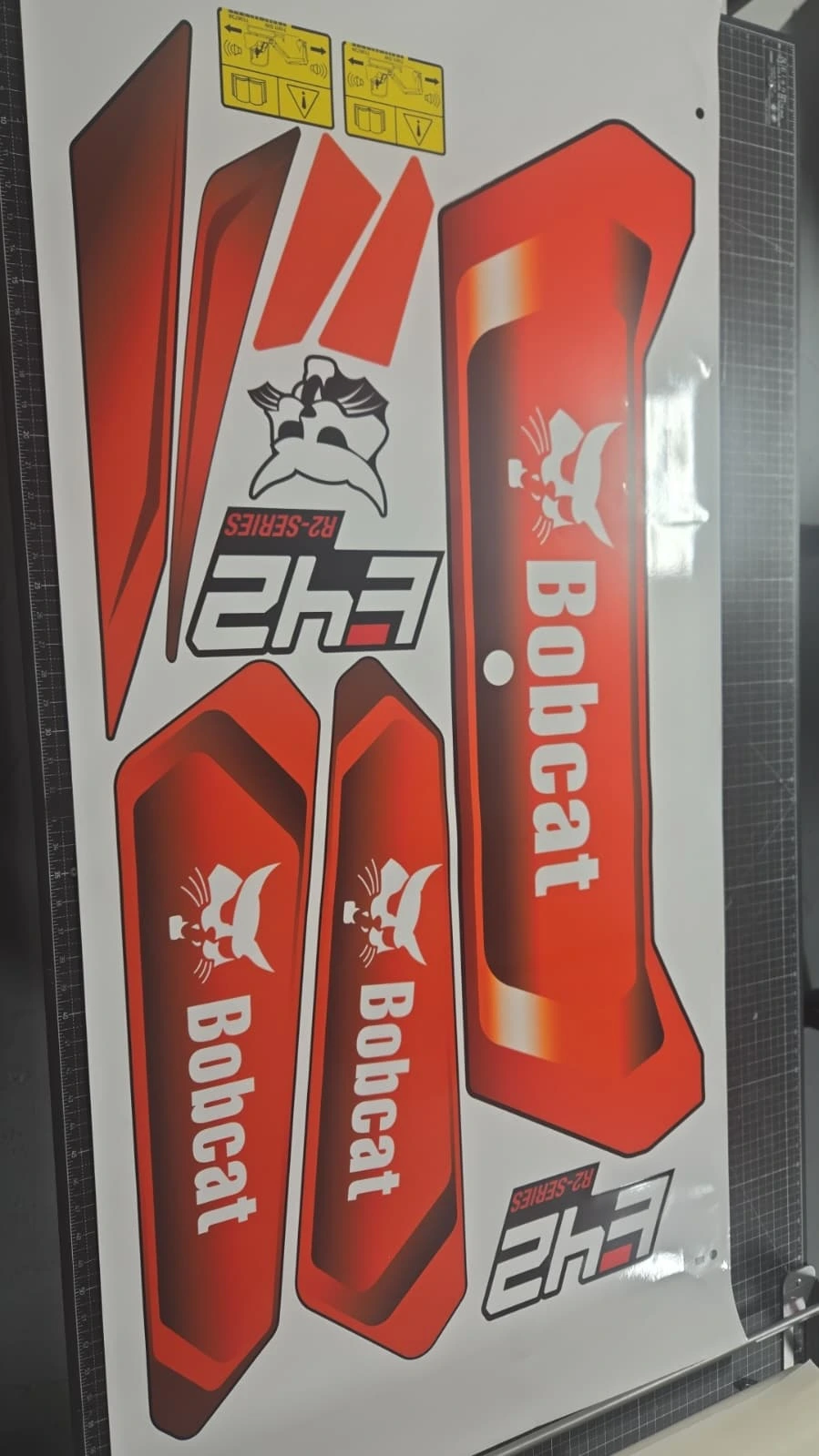 Our aftermarket Bobcat mini excavator stickers and decals are produced using high-quality materials suitable for compact construction equipment and outdoor environments. Each set is precision printed to ensure legibility, correct sizing, and long-lasting adhesion on both curved and flat surfaces commonly found on mini excavators.