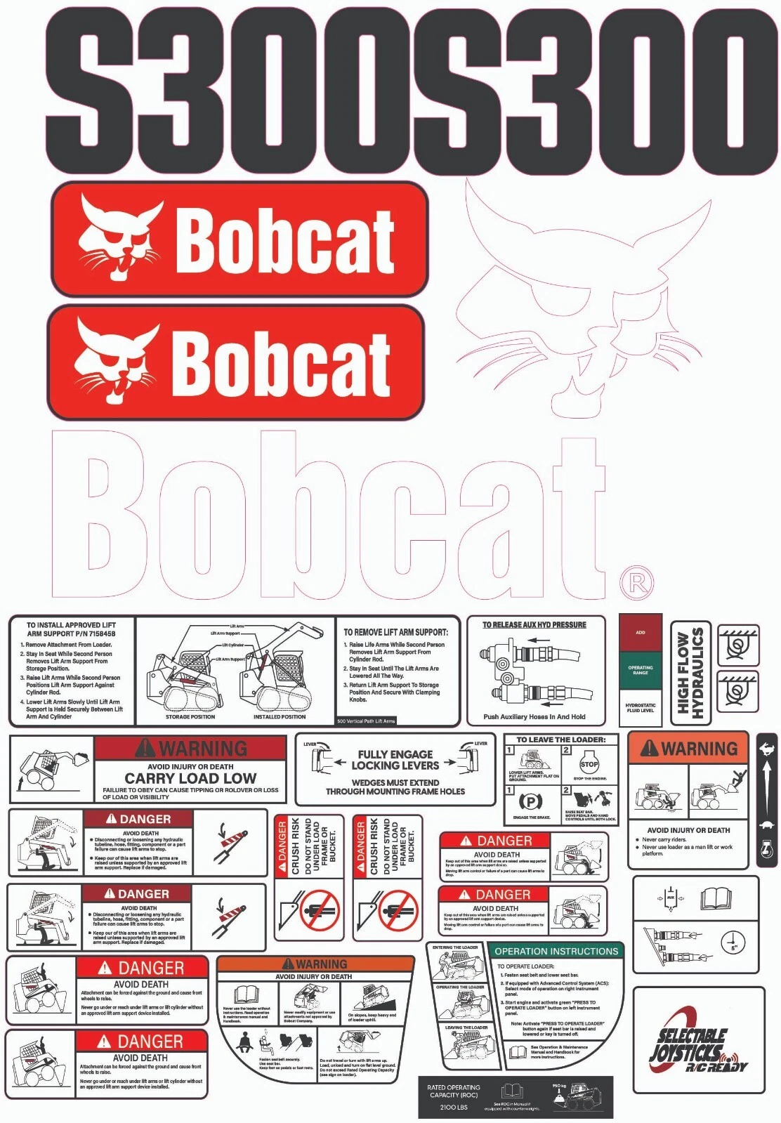 This decal kit is designed to fit Bobcat S300 Skid Steer machinery.