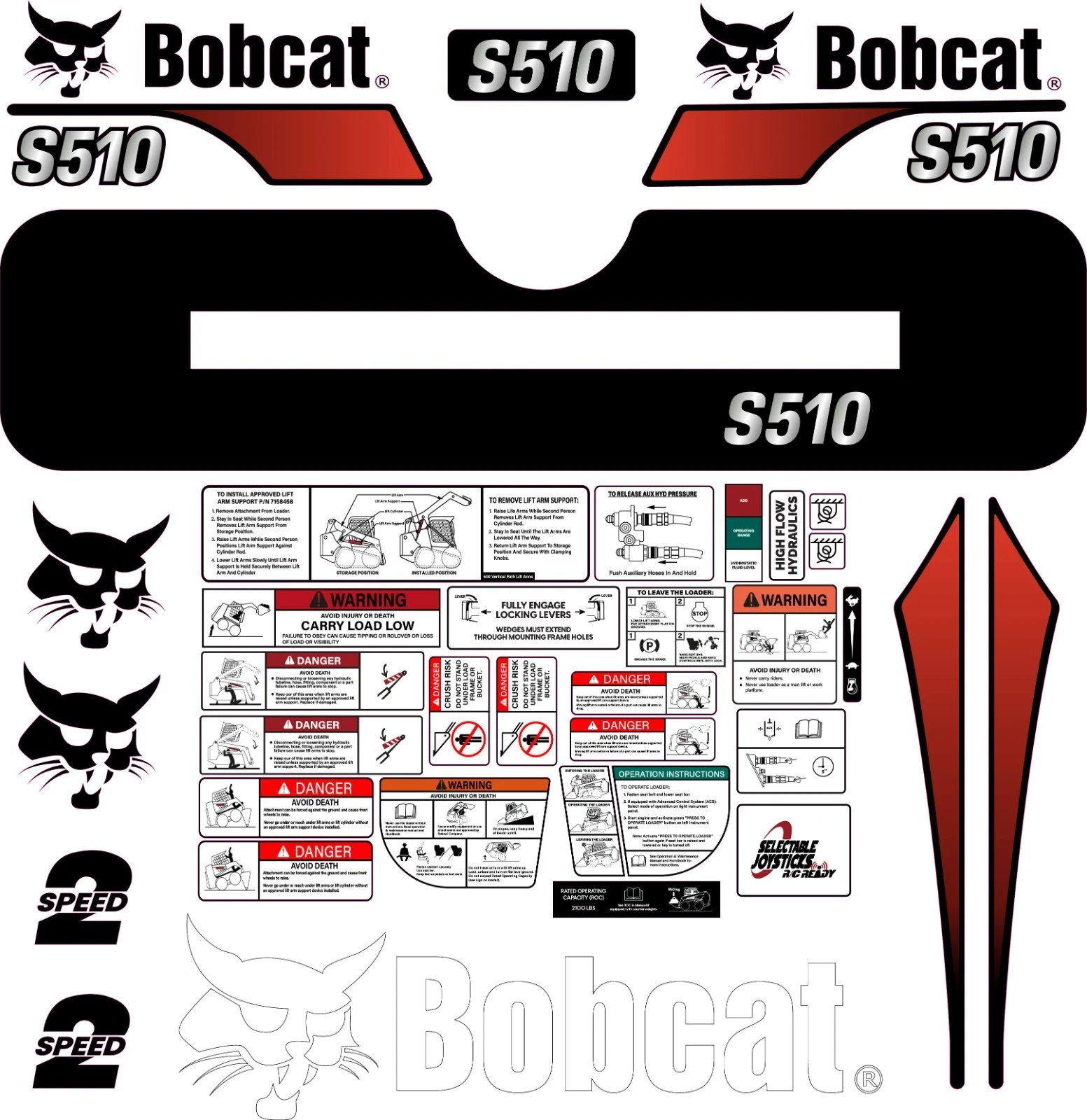 This decal kit is designed to fit Bobcat S510 Skid Steer machinery.