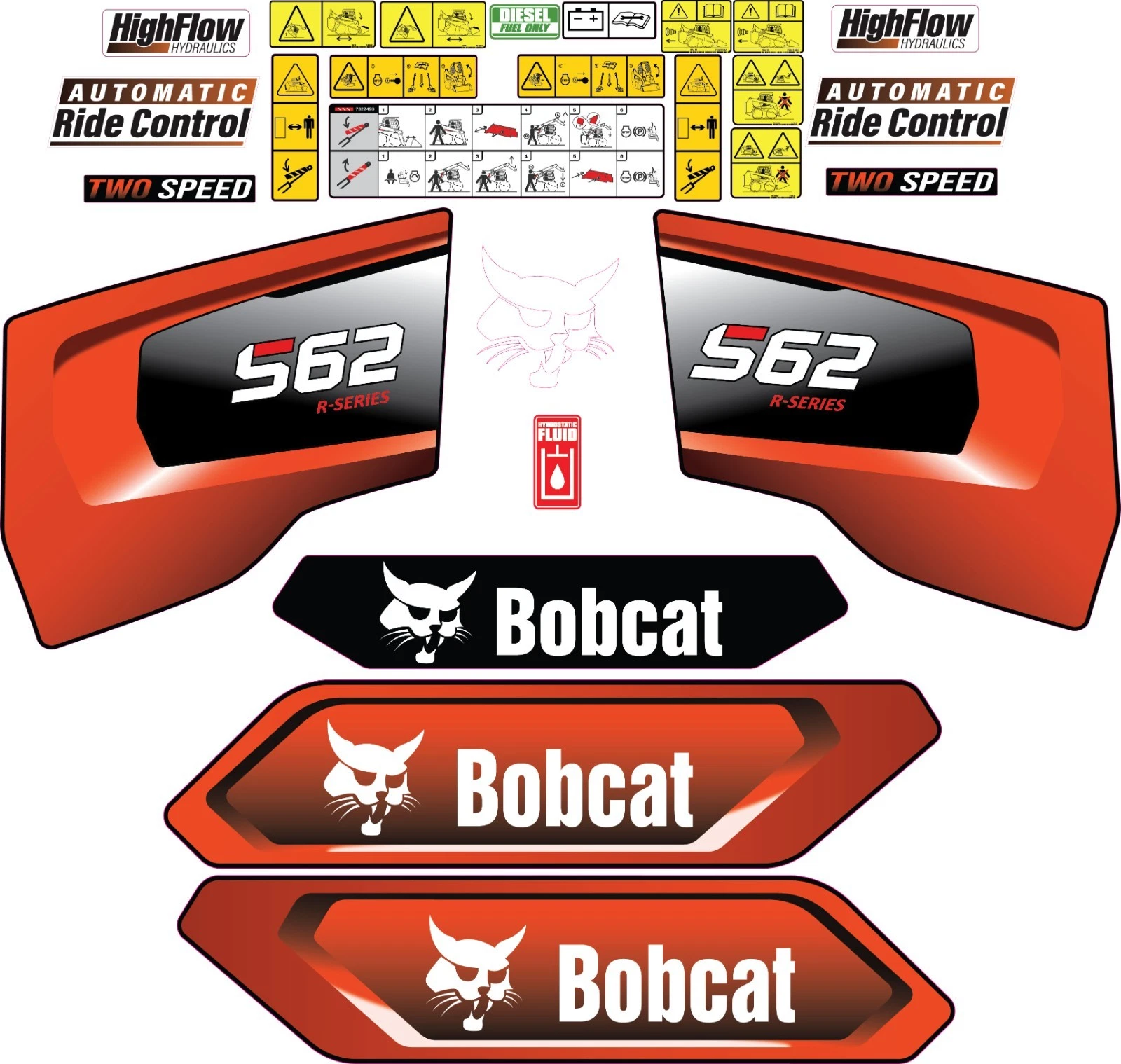 This decal kit is designed to fit Bobcat S62 Skid Steer machinery.