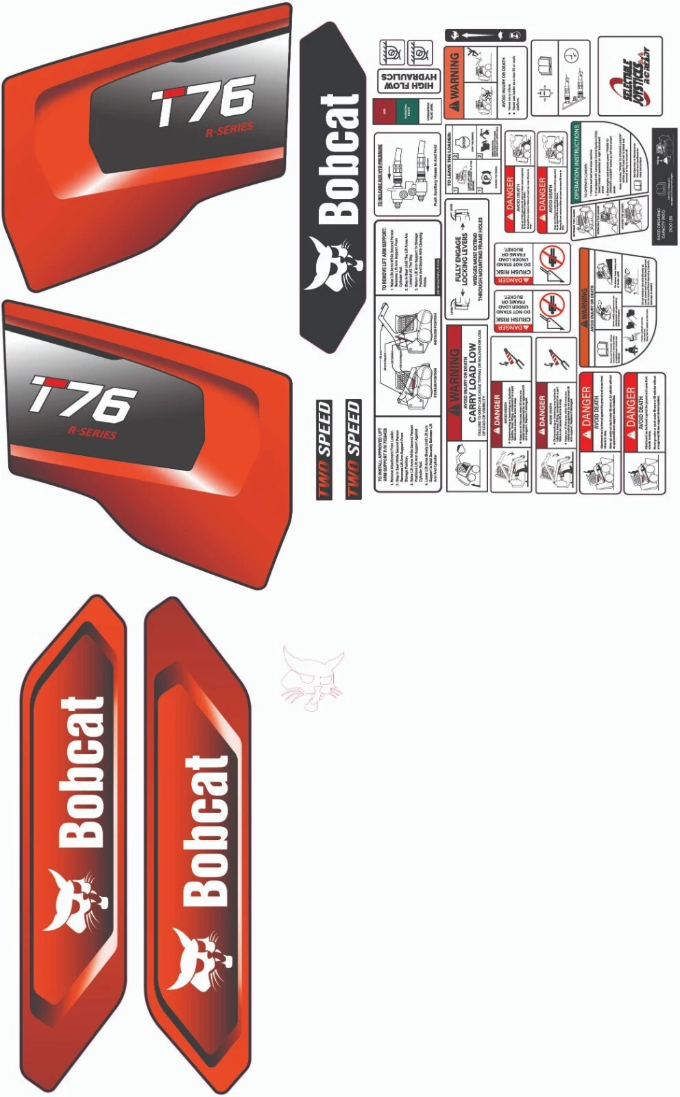 This decal kit is designed to fit Bobcat T76 Skid Steer machinery.