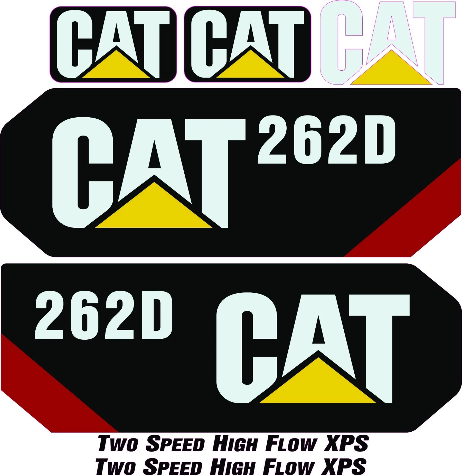 This decal kit is designed to fit Caterpillar 262D  Skid Steer machinery.