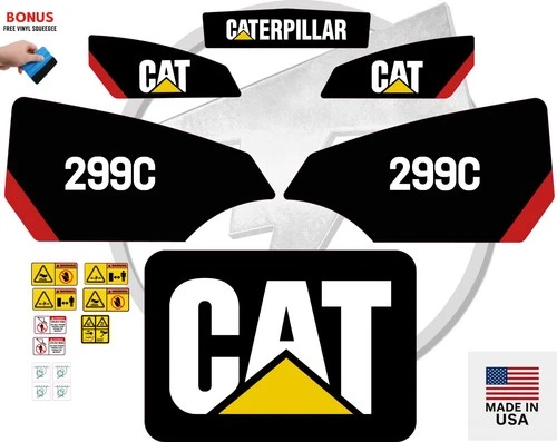 This decal kit is designed to fit Caterpillar 299C Skid Steer machinery. Please verify your equipment model before purchasing to ensure proper fitment. If you are unsure whether this decal kit is compatible with your machine, feel free to contact our support team before placing your order.