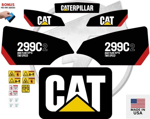 This decal kit is designed to fit Caterpillar 299C2 High Flow Two Speed Skid Steer machinery. Please verify your equipment model before purchasing to ensure proper fitment. If you are unsure whether this decal kit is compatible with your machine, feel free to contact our support team before placing your order.