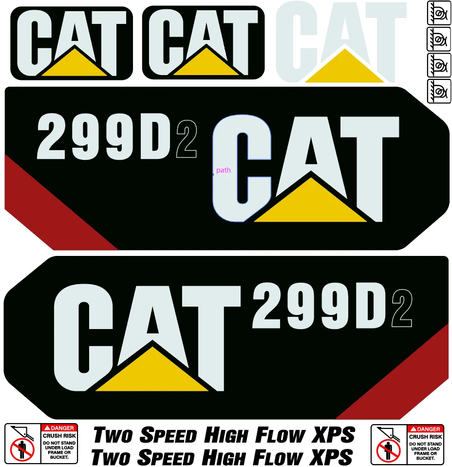 This decal kit is designed to fit Caterpillar 299D2 Skid Steer machinery.