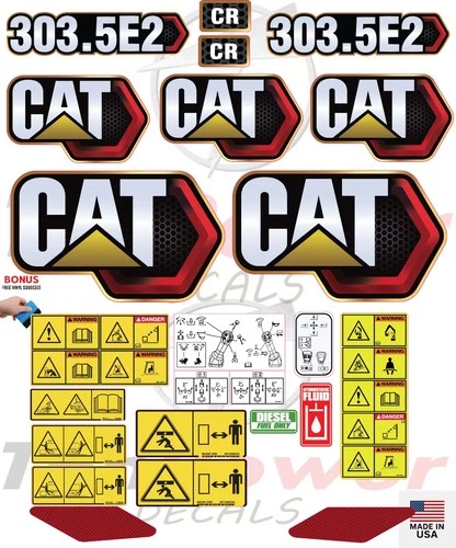 Upgrade and enhance the look of your equipment with this aftermarket sticker and decal kit for Caterpillar 303.5E2 Mini Excavator , designed to fit Caterpillar Mini Excavator machines and provide a high-quality replacement solution for worn, damaged, or faded graphics. These aftermarket Caterpillar 303.5E2 Mini Excavator decals help restore your machine while keeping safety and identification labels clear and visible.