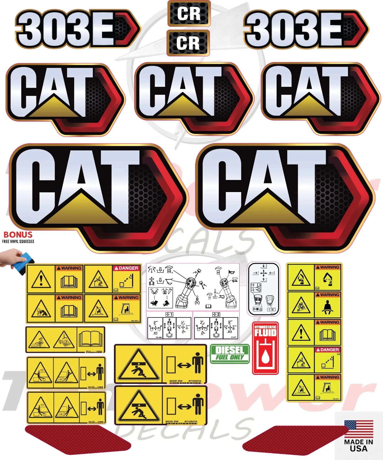 Upgrade and enhance the look of your equipment with this aftermarket sticker and decal kit for Caterpillar 303E  Mini Excavator , designed to fit Caterpillar Mini Excavator machines and provide a high-quality replacement solution for worn, damaged, or faded graphics. These aftermarket Caterpillar 303E Mini Excavator decals help restore your machine while keeping safety and identification labels clear and visible.