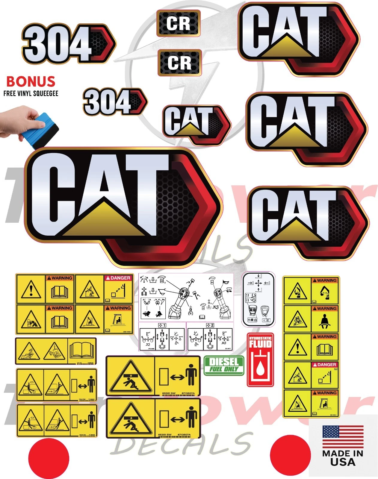 This product is an aftermarket replacement and not an OEM Caterpillar product. Ton Power Decals is not affiliated with, endorsed by, or sponsored by Caterpillar. All brand names and model references are used strictly for compatibility and identification purposes.
