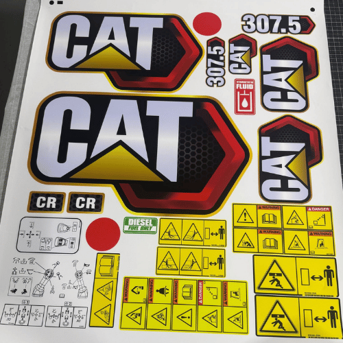 This decal kit is designed to fit Caterpillar 307.5 Mini Excavator machinery. Please verify your equipment model before purchasing to ensure proper fitment. If you are unsure whether this decal kit is compatible with your machine, feel free to contact our support team before placing your order.