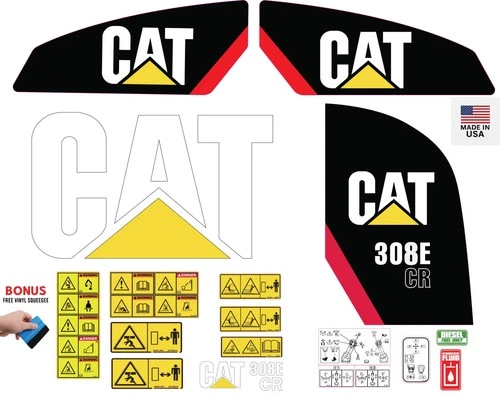 This decal kit is designed to fit Caterpillar 308E CR Mini Excavator machinery.