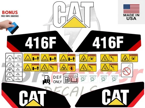 This decal kit is designed to fit Caterpillar 416F Backhoe Loader machinery. Please verify your equipment model before purchasing to ensure proper fitment. If you are unsure whether this decal kit is compatible with your machine, feel free to contact our support team before placing your order.