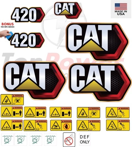 This decal kit is designed to fit Caterpillar 420 Backhoe Loader machinery. Please verify your equipment model before purchasing to ensure proper fitment. If you are unsure whether this decal kit is compatible with your machine, feel free to contact our support team before placing your order.