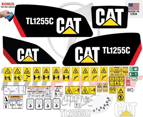 This aftermarket Caterpillar TL1255C telescopic forklift sticker and decal kit is intended for: