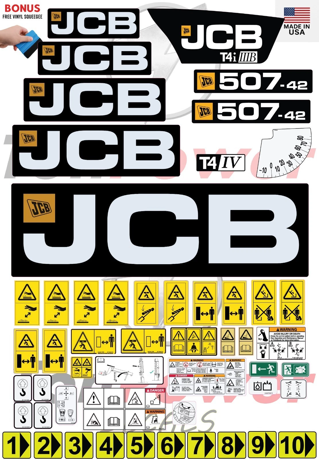 This product is an aftermarket replacement and not an OEM product. TonPower Decals is not affiliated with, endorsed by, or sponsored by JCB. All brand names and model references are used strictly for compatibility and identification purposes.