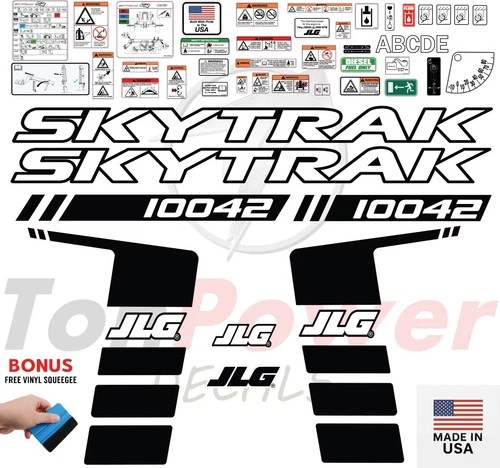This decal kit is designed to fit JLG 10042 Telehandler machinery. Please verify your equipment model before purchasing to ensure proper fitment. If you are unsure whether this decal kit is compatible with your machine, feel free to contact our support team before placing your order.