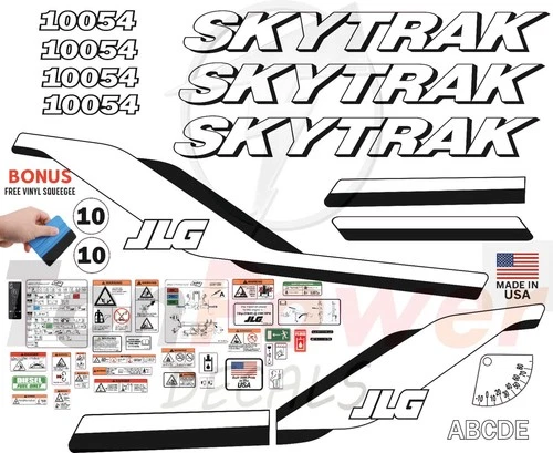 This decal kit is designed to fit JLG 10054 Telehandler machinery. Please verify your equipment model before purchasing to ensure proper fitment. If you are unsure whether this decal kit is compatible with your machine, feel free to contact our support team before placing your order.