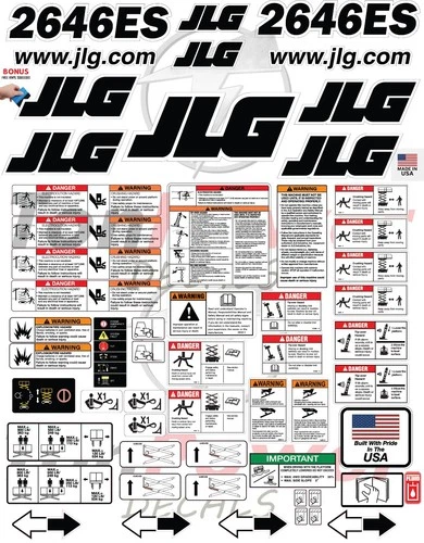 This aftermarket JLG scissor lift sticker and decal kit is designed to fit JLG 2646ES scissor lift equipment and is manufactured to meet high-quality standards for durability, clarity, and long-term performance. These aftermarket JLG stickers and decals are ideal for replacing worn, damaged, or missing safety, warning, and identification decals commonly exposed to harsh jobsite conditions in lifting and access operations.