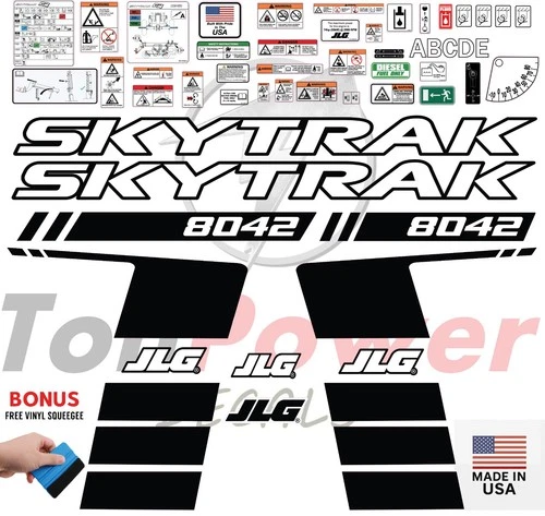 This decal kit is designed to fit JLG 8042 telehandler machinery.