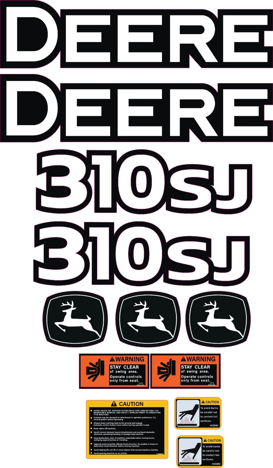 This decal kit is designed to fit JOHN DEERE 310SJ BACKHOE Loader machinery.