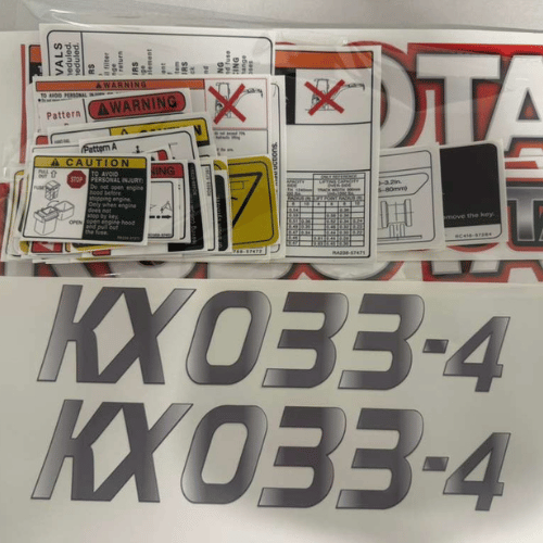 This decal kit is designed to fit Kubota KX033-4 Mini Excavator machinery. Please verify your equipment model before purchasing to ensure proper fitment. If you are unsure whether this decal kit is compatible with your machine, feel free to contact our support team before placing your order.