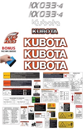 This decal kit is designed to fit Kubota KX033-4 Mini Excavator machinery.