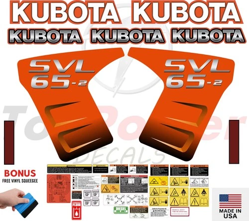 This decal kit is designed to fit Kubota SVL65-2 Skid Steer machinery.