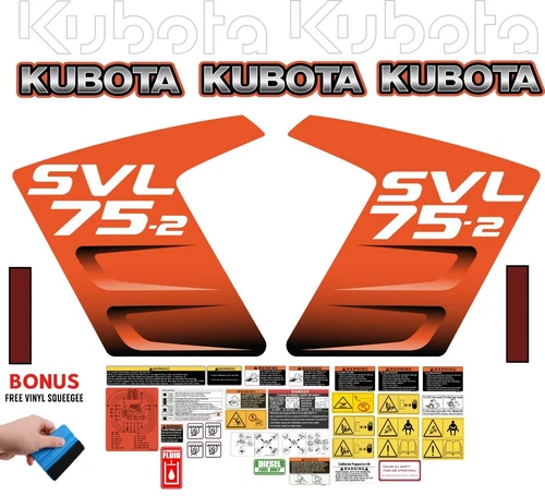 This decal kit is designed to fit Kubota SVL75-2 Skid Steer machinery.