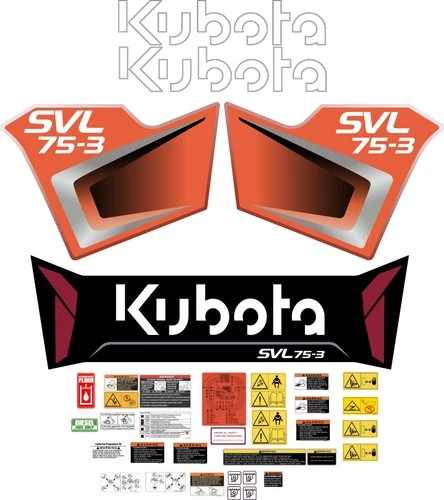 This aftermarket Kubota Skid Steer sticker and decal kit is designed to fit Kubota SVL75-3 Skid Steer equipment and is manufactured to meet high-quality standards for durability, clarity, and long-term performance. These aftermarket Kubota stickers and decals are ideal for restoring the original appearance of your machine or replacing worn, damaged, or missing safety and identification decals.