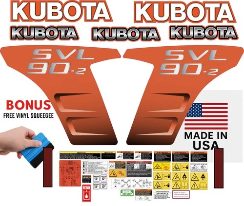 This aftermarket Kubota Skid Steer sticker and decal kit is designed to fit Kubota SVL90-2 Skid Steer equipment and is manufactured to meet high-quality standards for durability, clarity, and long-term performance. These aftermarket Kubota stickers and decals are ideal for restoring the original appearance of your machine or replacing worn, damaged, or missing safety and identification decals.
