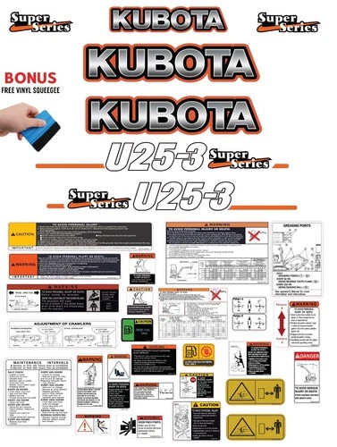 This decal kit is designed to fit Kubota U25-3 Mini Excavator machinery.